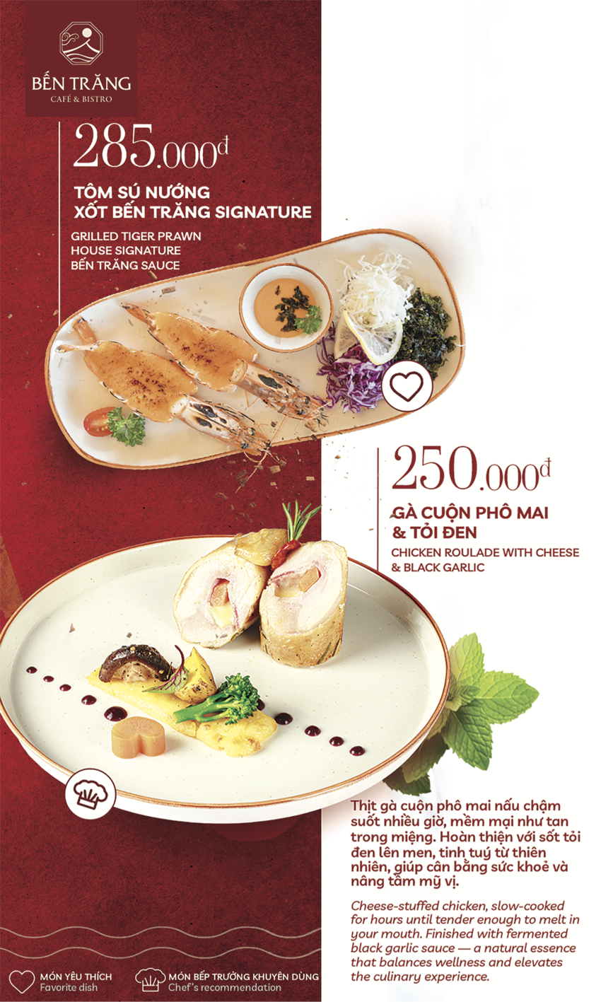 Bến Trăng Café & Bistro không chỉ dừng lại ở một không gian đẹp ở Huế mà còn là nơi đưa thực khách vào hành trình khám phá hương vị đầy cảm xúc với những trải nghiệm tinh tế: