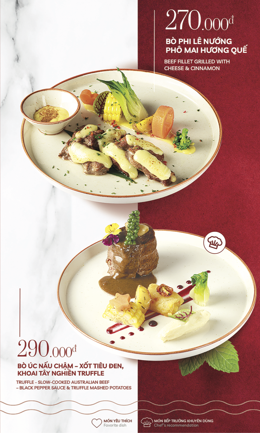 Ẩm thực tinh tế thăng hoa trong không gian bistro thanh lịch, nơi mỗi cuộc gặp gỡ được nâng niu bằng những khoảng lặng đủ để cảm nhận trọn vẹn hương vị