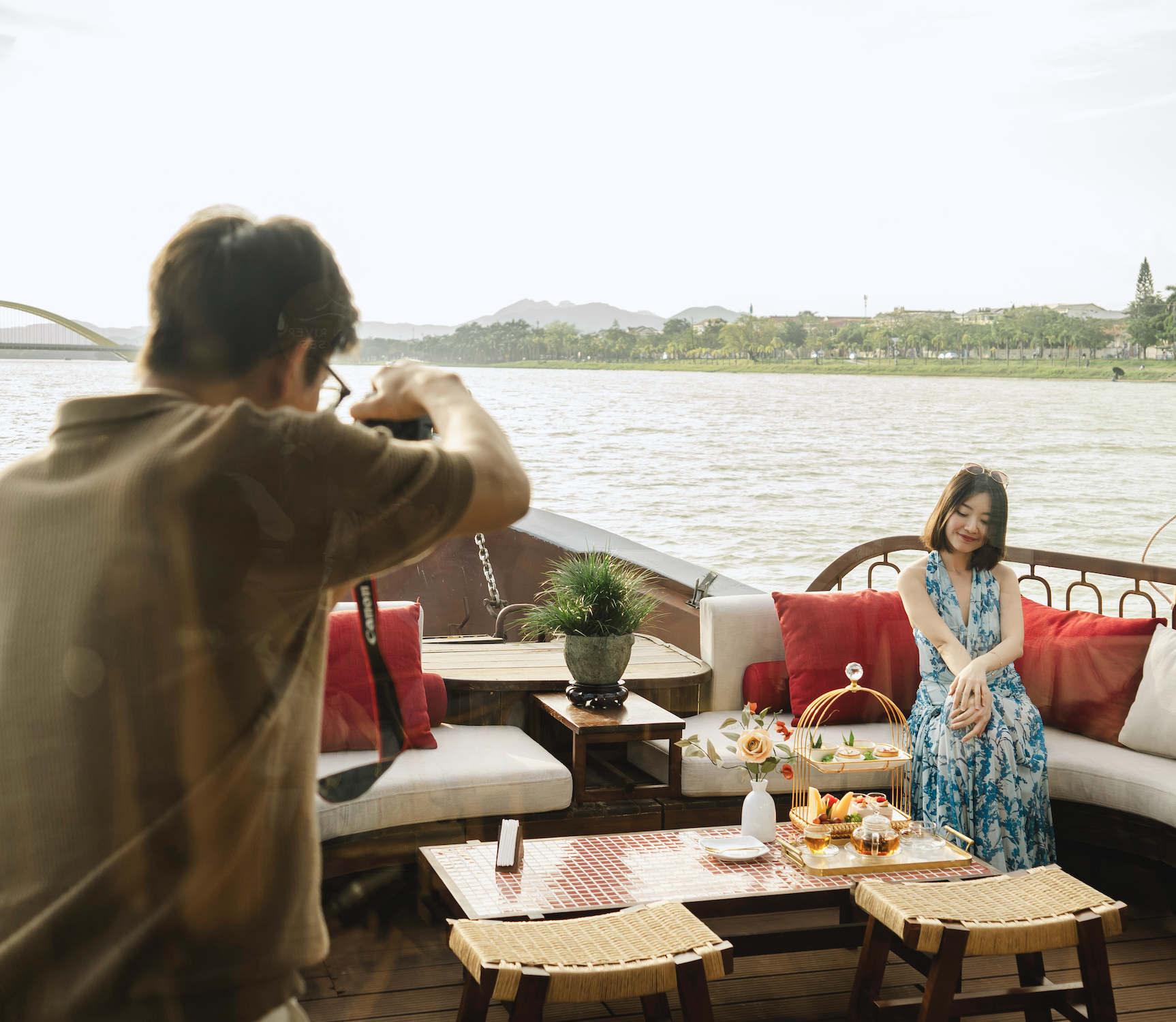 Thưởng trà giữa dòng Hương yên ả, nơi hương vị cung đình hòa quyện cùng nét sáng tạo đương đại. Mỗi tách trà là hành trình cảm xúc, kết nối con người với vẻ đẹp di sản Cố Đô.